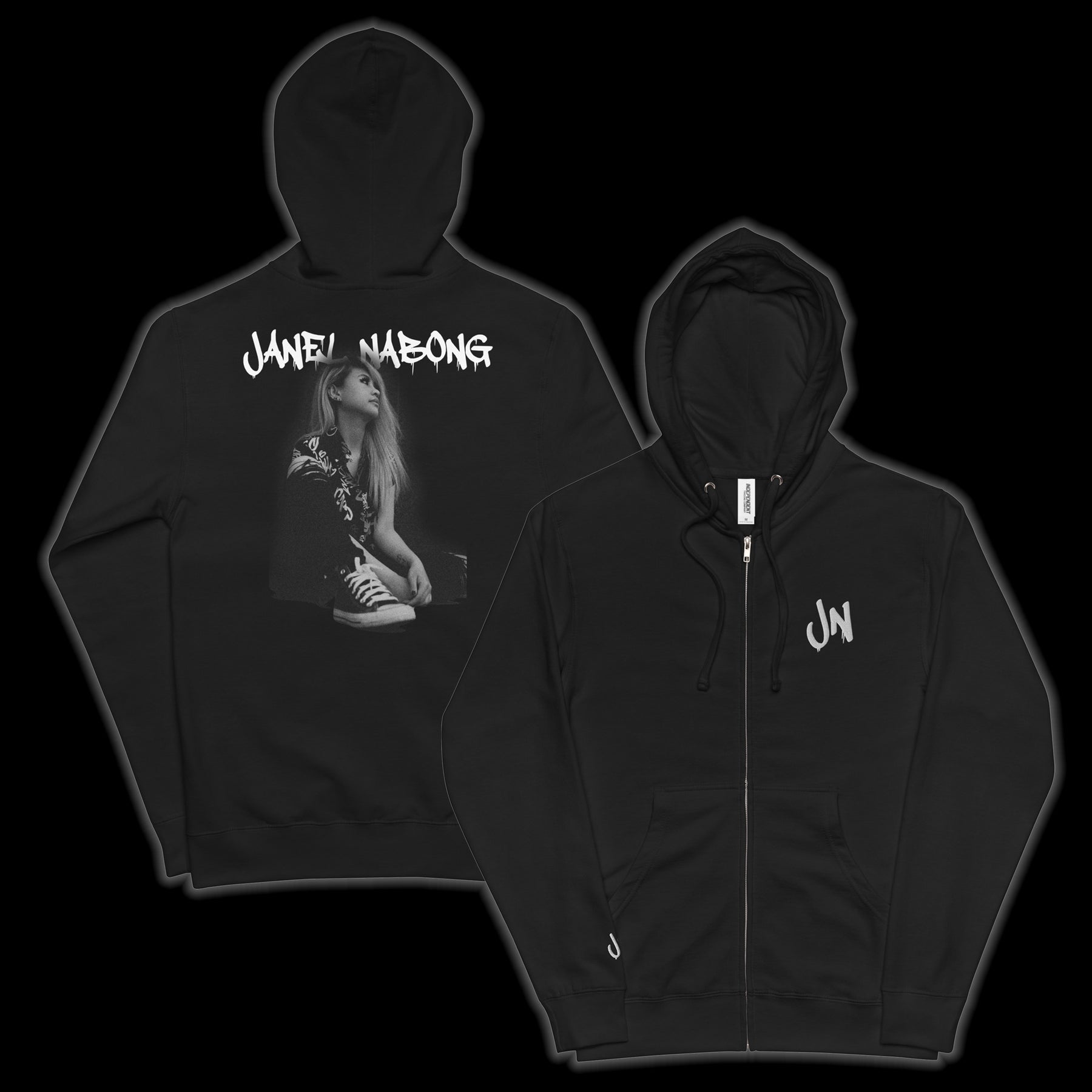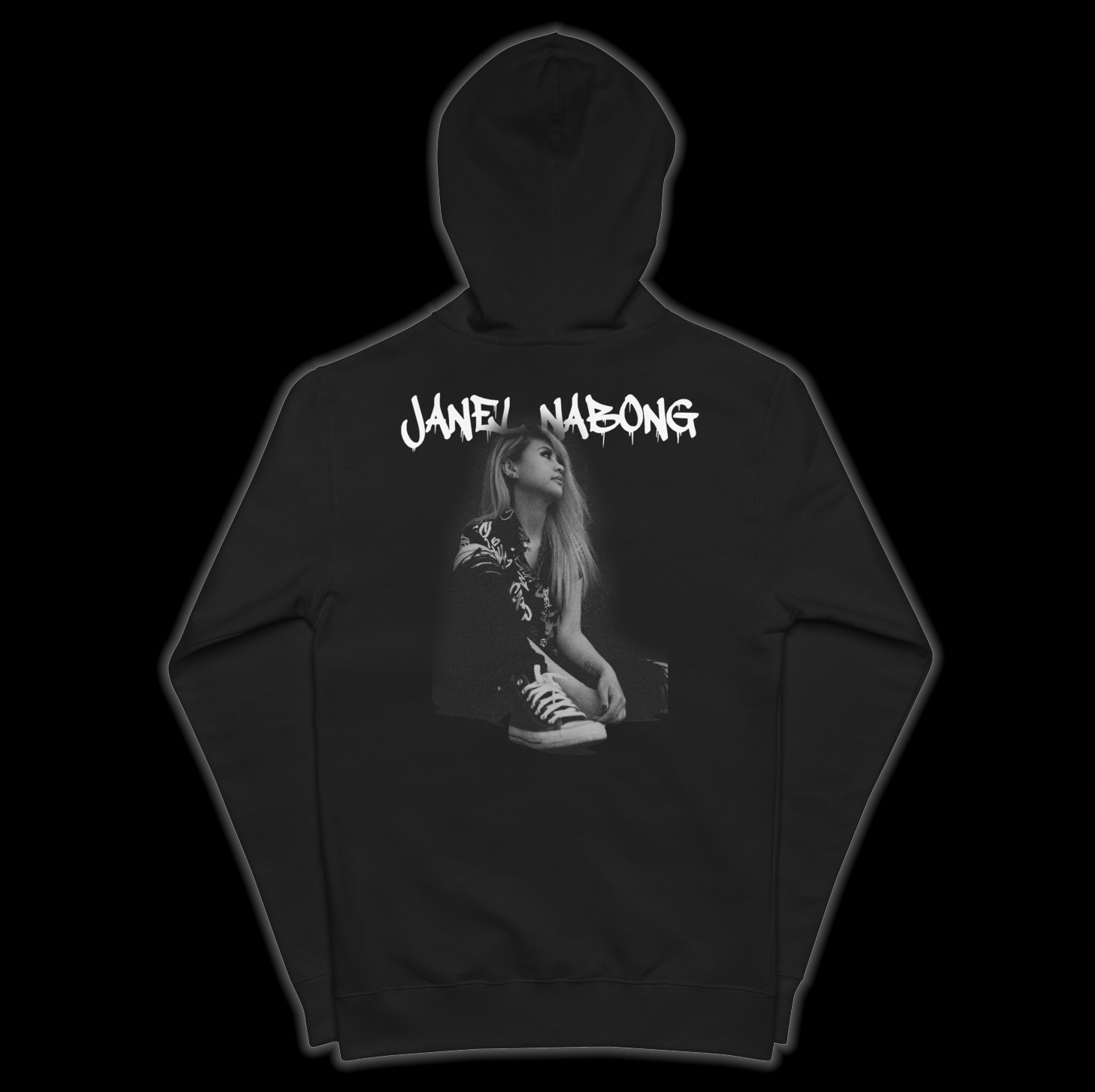 • Name graffiti and black and white Janel Nabong portrait on the back